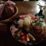 It can be argued that V1no55’s mixed plate of cold cuts is not a Brettljause. One can say that it’s a snack to accompany wine in this tiny bar in the center of Vienna. On the other hand, what is a Brettljause if not a (sometimes rather heavy) snack to accompany wine in a Heuriger? And what is a Heuriger if not a (quaint version of a) wine bar? OK, there is no wooden plate in sight, but who cares?