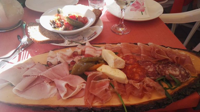 Although listed in the “starters” section of the menu, this cold plate was far from being small, and if you, like me, are eating alone, taking it and nothing else is completely sufficient. There are better Jausen around, even in Italy, but the view from the restaurant’s terrace is very beautiful, and the waiters/owners are friendly. Going to the Lake Garda may not contribute much to the Brettljause experience, but if you are anyway there and dying for a Brettljause, Al Rio Se is not a bad option at all.