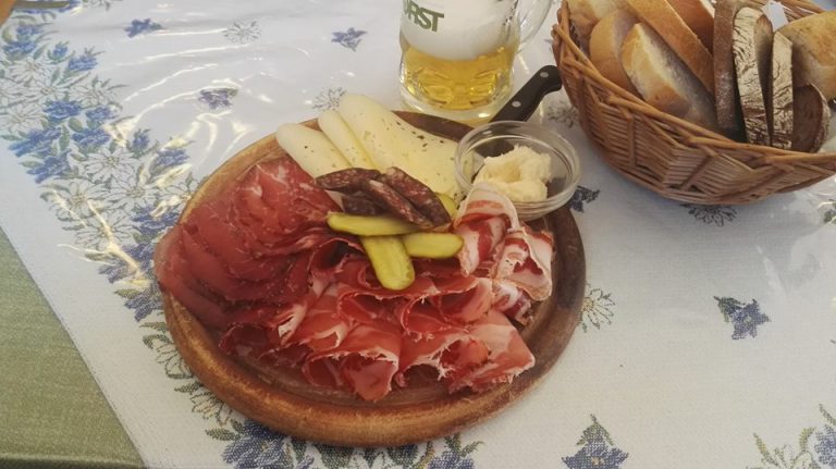 It’s a strange dish name for a strange location. Even if you choose the right path (which I did not), the Dreizinnenhütte is not easy to reach. On your way there, however, you enjoy some of the best sights South Tyrol has to offer, and once you see the two lakes just below the hut, you fall in love with the place immediately. It’s heaven on Earth, and the Brettljause is not at all as expensive as it could have been.