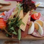 The vegetable part of the Jause consisted of a few leaves of green salad, a couple of cocktail tomatoes, a few slices of a fresh cucumber and the horseradish cut into such fine pieces that there was no taste left in them.