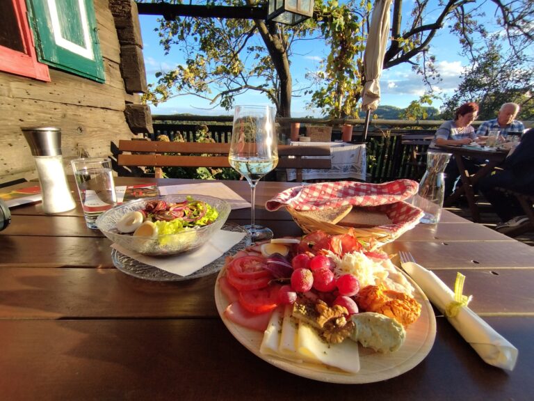 Eaten: | Brettljause, runner bean salad, ¼ Sauvignon Blanc, 1/8 Weissburgunder, 1/8 Sauvignon Blanc UNLIMITED |