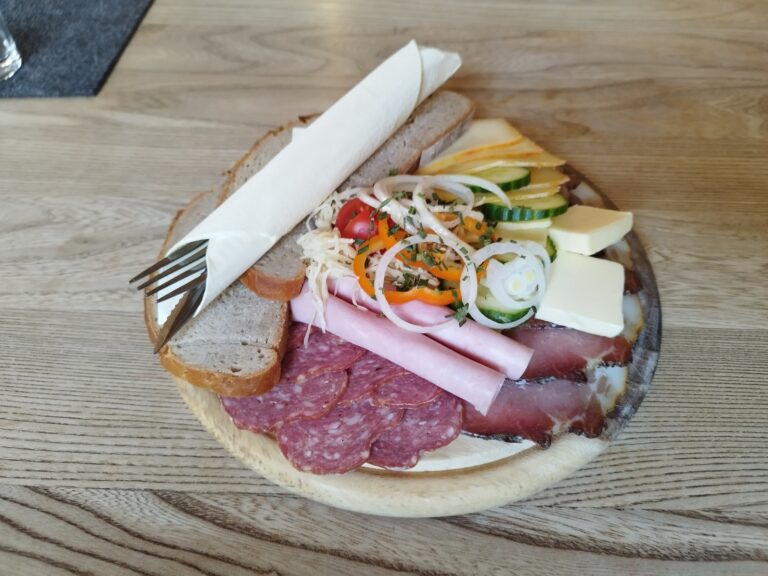 The shop must be a family-run business, and the service was simple but very friendly. Quite some attention must have gone into arranging and decorating the Brettljause, for it looked nice and was well-balanced. Speck was the Jause’s highpoint – very tasty and authentic, as one would expect from local farmers. The cheese had a smoky taste, and the horseradish was pleasantly fresh and occasionally tear-inducingly strong. I was not that impressed with the other ingredients, such as salami, however. While it was nice to have them, they did not taste differently from the stuff one could get from a supermarket.