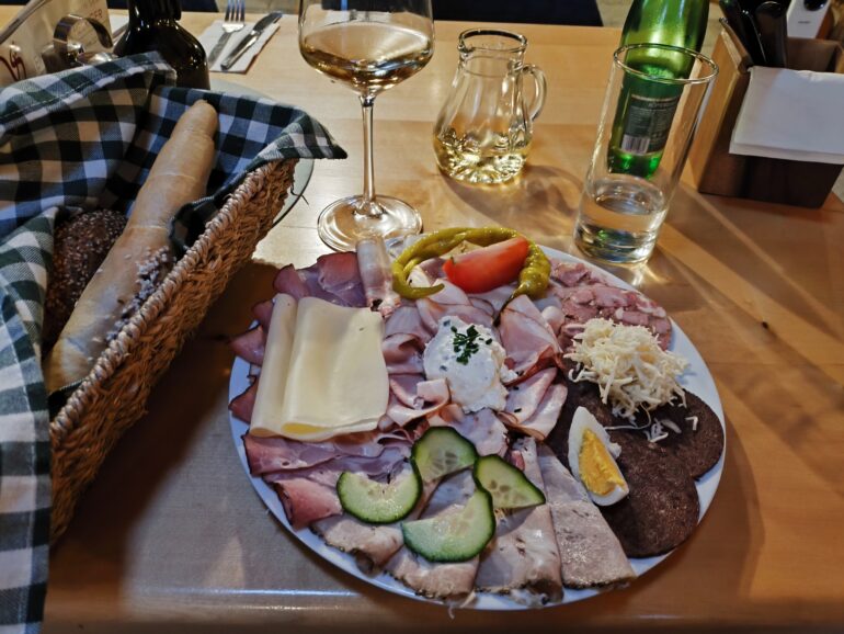 Though there are several Heurige in the villages around Hollabrunn – some of them really good – Traubenwerk is the only one located within the town’s boundaries. Sadly, in contrast to the tavern’s pleasant interior and good service, its Brettljause is almost as dull as the town itself.