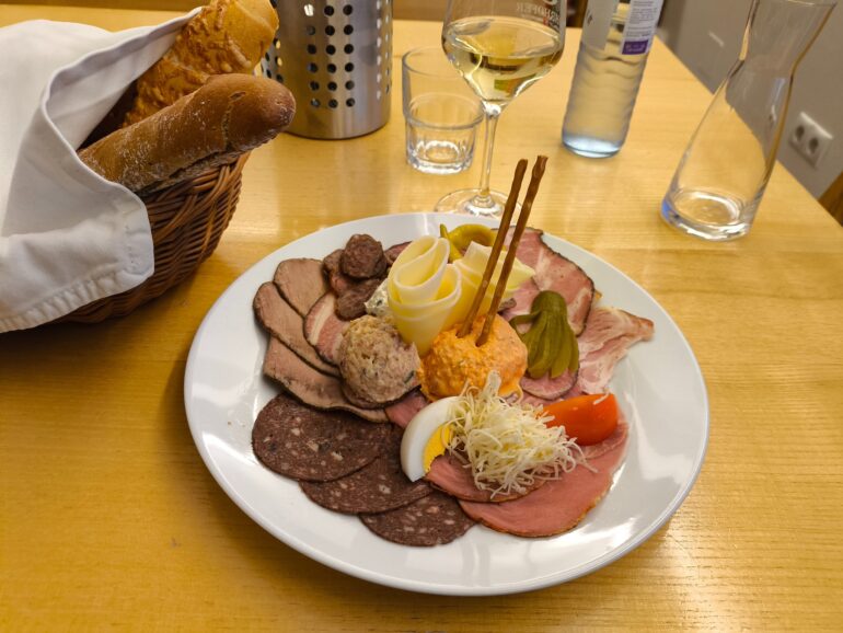 I was triple lucky because Rohrhofer’s Hauerjause was truly excellent. It lacked in the cheese department (a curse of Lower Austria), but compensated by having three extremely fresh and tasty spreads. The meat spread was the absolute highlight – very creamy and pleasantly salty. A basket of various rolls was provided, and all of them were warm, as if coming straight from the oven. If you like spreads, the menu offers a separate plate with seven different ones, and I am seriously thinking of returning just to try it.