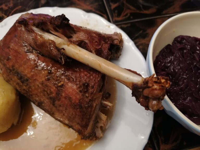 But there was a lot of work. The bones had to be disposed of, the plates had to be washed, the pans had to be washed, the sink had to be cleaned from fat and the tiny bits of goose and cabbage threatening to clog the pipes, the table had to be cleaned… by the time I finished, I regretted starting this whole sous vide business. This goose was nothing like the winner I remember from three years ago. It was not bad either, nevertheless, so if you are better at cooking then me (which is very easy) and have a large over pan, you can give it a try. But don’t expect the result to be enough for two.