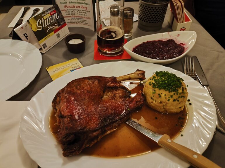The size doubts were resolved pretty quickly, however, as I could find plenty of meat around the main bone. The saltiness level went down as well, encouraging me to mix the meat with the jus, the red cabbage and the dumpling. The combination was faultless. The dish was so enjoyable, I would have loved it to be 25% bigger, but this is just a wish and not a complaint. Honestly, I was not as impressed by Musil’s goose as I was last year, but it is still one of the top places to eat Martinigansl in Vienna. The price is quite steep, but, on the other hand, it can save you the cost of the entrance ticket to a Deix’s exhibition.