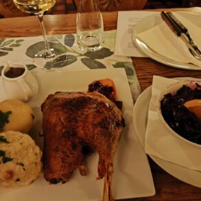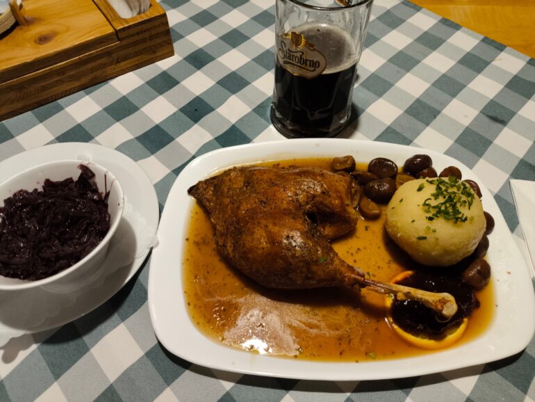 The problem is, last year I visited Jedlersdorfer Alm early in the evening on a working day. Today I arrived on a Sunday evening and quite late. I was therefore not very surprised that the dish took nearly half an hour to reach my table. I could almost imagine the cook swearing, “What? A goose? At this time of the day? Where am I supposed to find one?” They found one, obviously, but it tasted anything than fresh. The meat was super-tough and tried to stick to the bones with such a persistence, it was probably maintaining a hope of getting reanimated by a necromancer later on. A very sharp knife provided by the restaurant did not help much, The plate was also full of chestnuts, and while a year ago they were well-cooked and soaking in a sauce, today they were bland, lukewarm and far, far too numerous – as if the cook had decided to punish me for arriving too late by flooding me with leftover chestnuts.